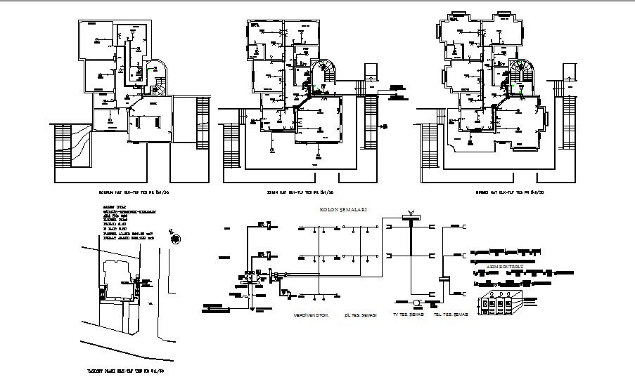 Electrical layout plan details of all floors of villa cad drawing details dwg file