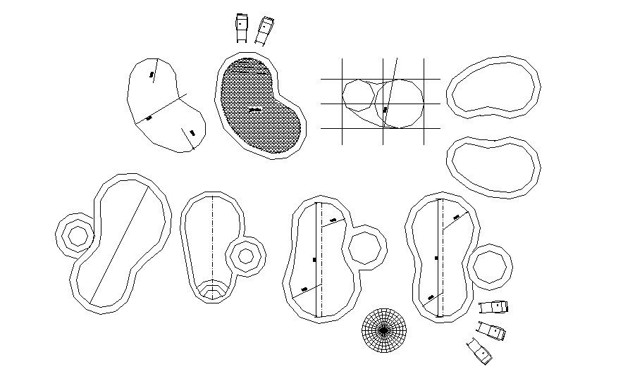 Multiple swimming pool and desk and furniture blocks cad drawing details dwg file