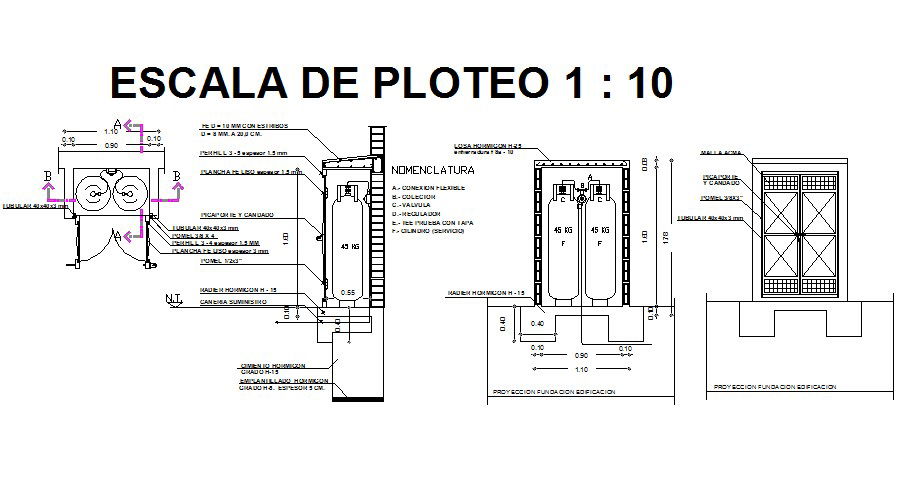 Glass gas center installation cad drawing details that includes a detailed view of tubular details, tee taste details, paddle lock details, dimensions details and much more of glass center details.