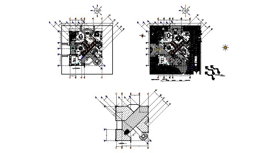 Ground, first and terrace floor plan details of luxuries bungalow dwg file