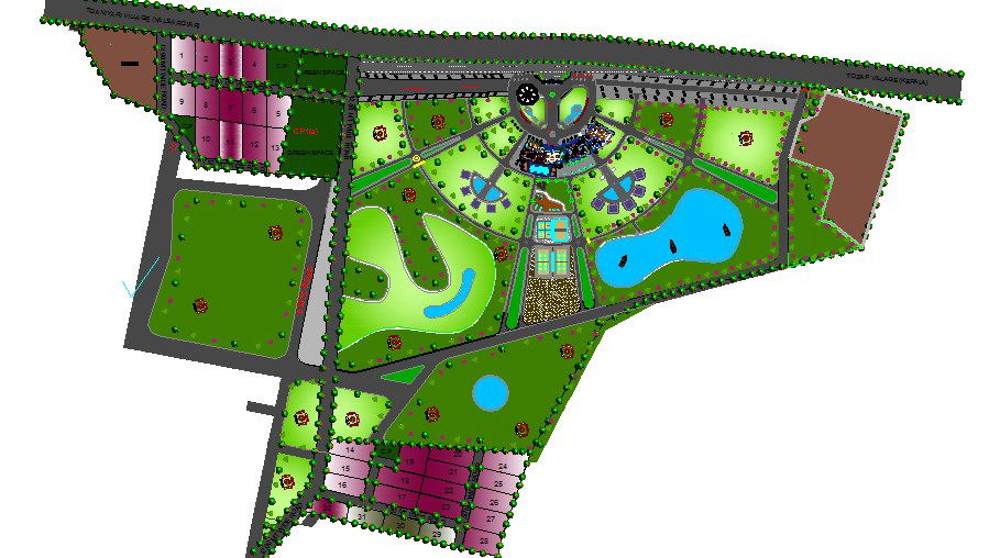 Office building landscaping structure, site plan and auto-cad details dwg file