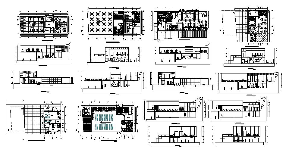 Club house all sided elevation, section and plan cad drawing details dwg file