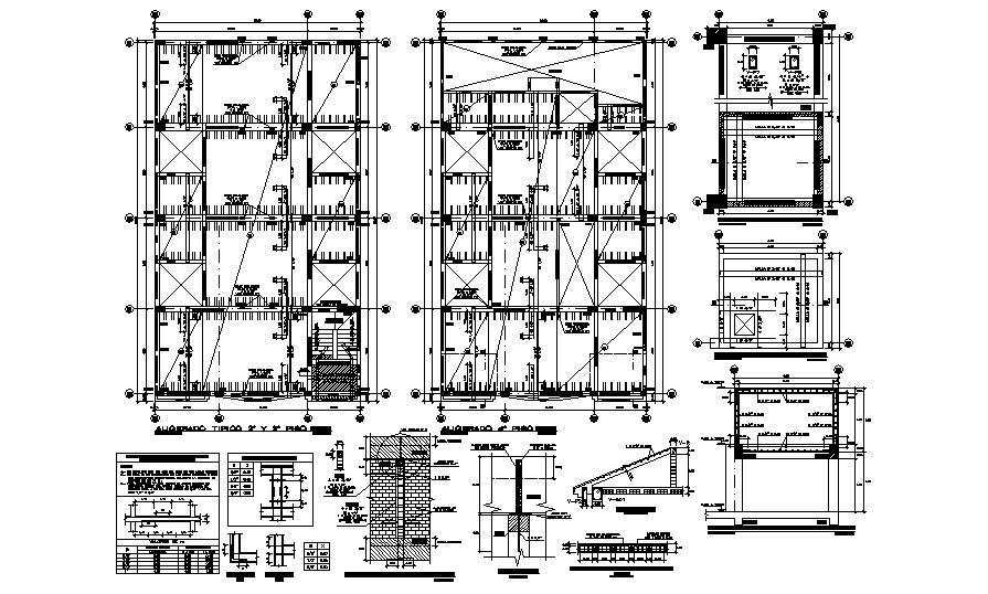 Foundation, roof cover and constructive details of building that includes a detailed view of foundation plan, structure details, floor construction, beam construction, floor wise structure and constructive details with memory of materials, footings details, staircase construction and sectional details, steps details, dimensions, column view, beam construction, covers closure type and , soil burried wall closure type and , exterior solera, holes, interior partition, granite veneer of the country with steel supports and much more of building construction details.