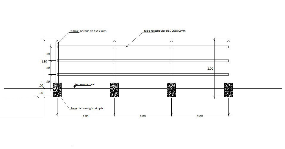 Perimeter fence section cad drawing details that includes a detailed view of measures details, footing details, scale details, material details and much more of fence structure details.