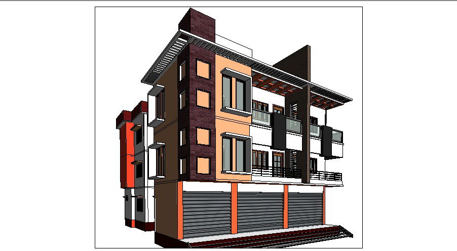 Multi-story residential flats with commercial 3d building cad drawing details rvt file