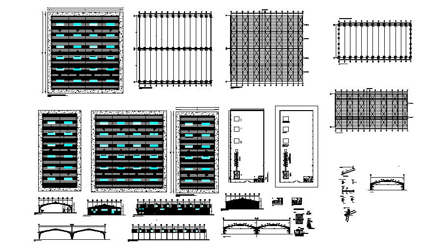 Industrial warehouse elevation, section, plan and auto-cad details dwg file