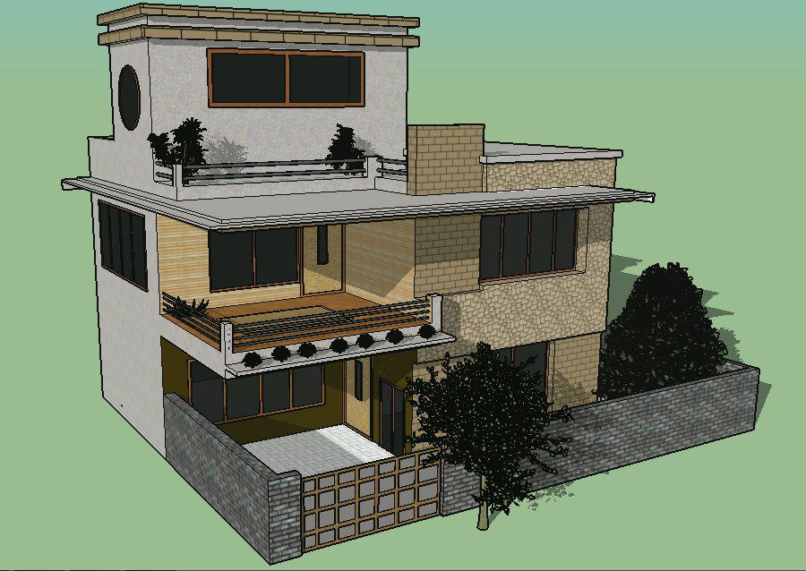 Beautiful luxuries 3d bungalow model cad drawing details skp file