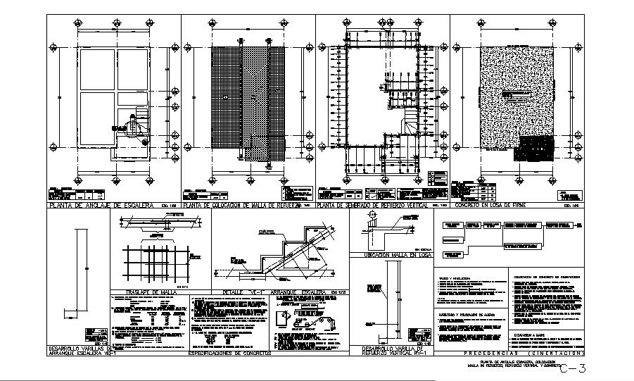 Framing plan, cover plan, staircase and constructive structure details of house dwg file