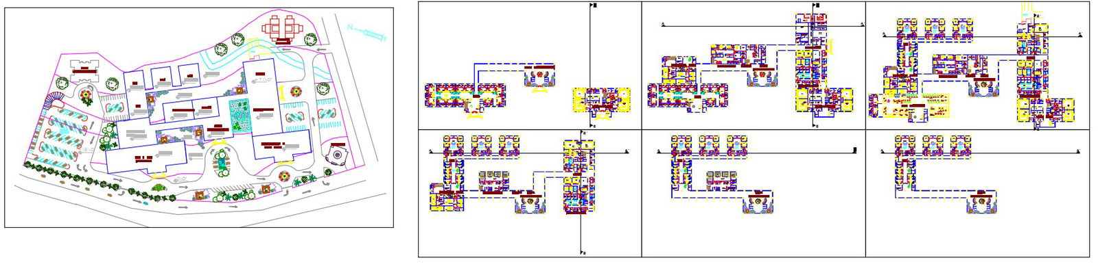 300 bed hospital detailed plan on contour site with all fixtures and parking and complete master plan the hospital includes emergency department with medical and surgica emergency pediatrics , gynecology cardiology department day hospital blood bank and dispensary