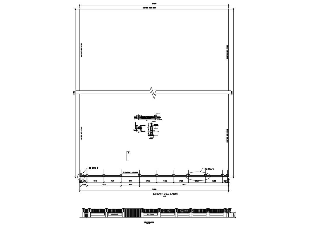 House fence and gate elevation, section and auto-cad details that includes a detailed view of iron fence sectional details, dimensions details, material details, measures details, supportive slab details and much more of fence details.