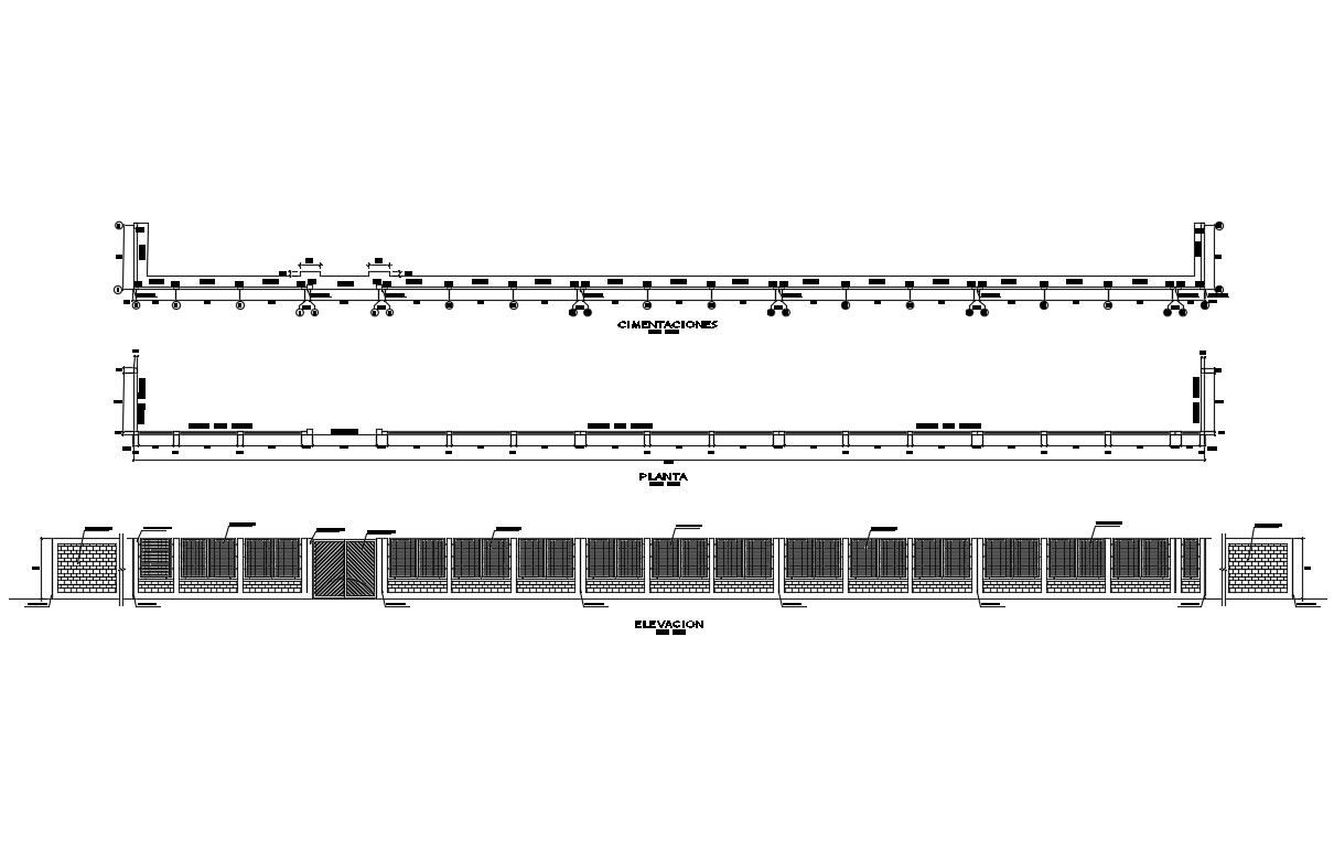 Perimeter fence elevation, plan and construction details dwg file