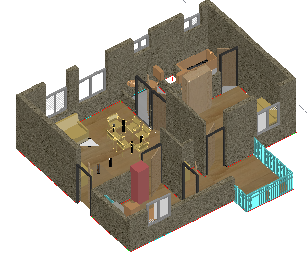 1 bhk appartment design for the following requiremets with , dining area , bedroom , kitchen , balcony, toilets
