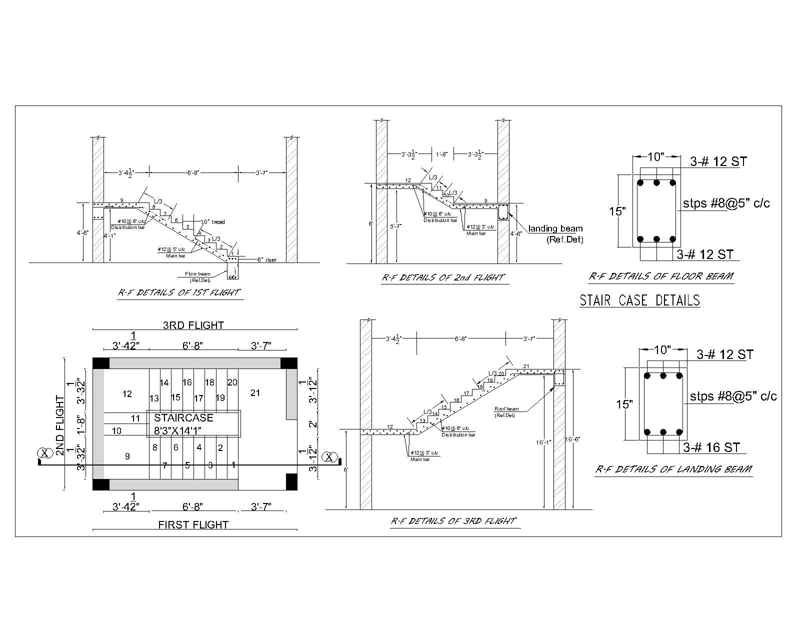 Staircase is an important component of a building providing access to different floors and roof of the building. It consists of a flight of steps (stairs) and one or more intermediate landing slabs between the floor levels. Different types of staircases can be made by arranging stairs and landing slabs.