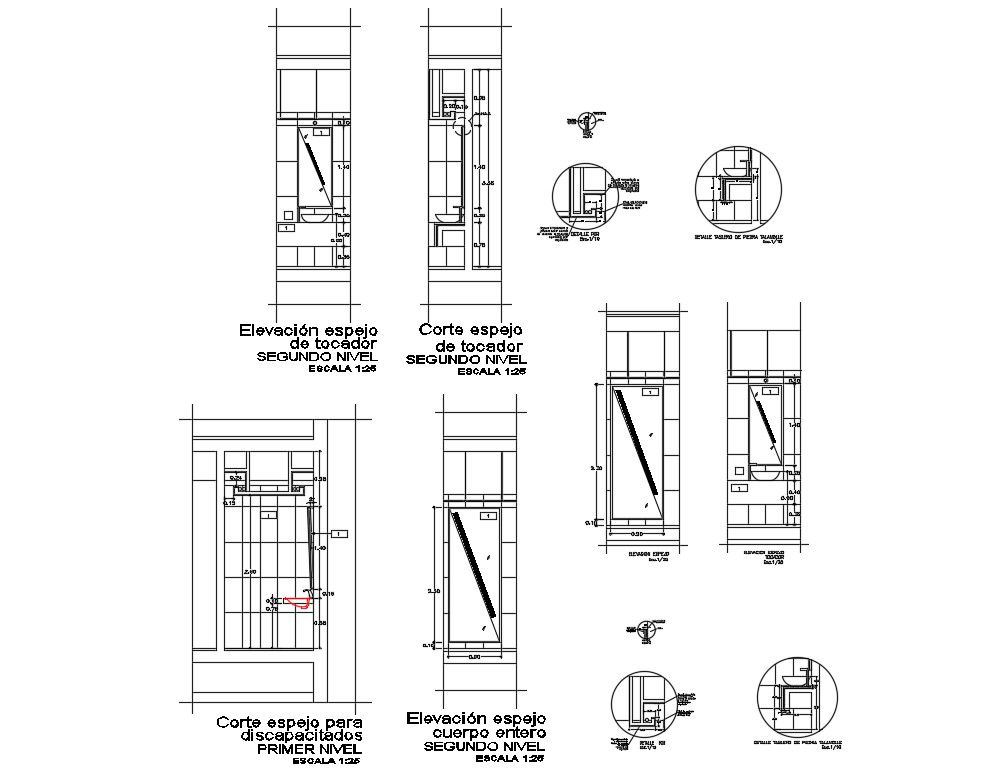 Second floor section, installation and plumbing details of public hygiene services dwg file