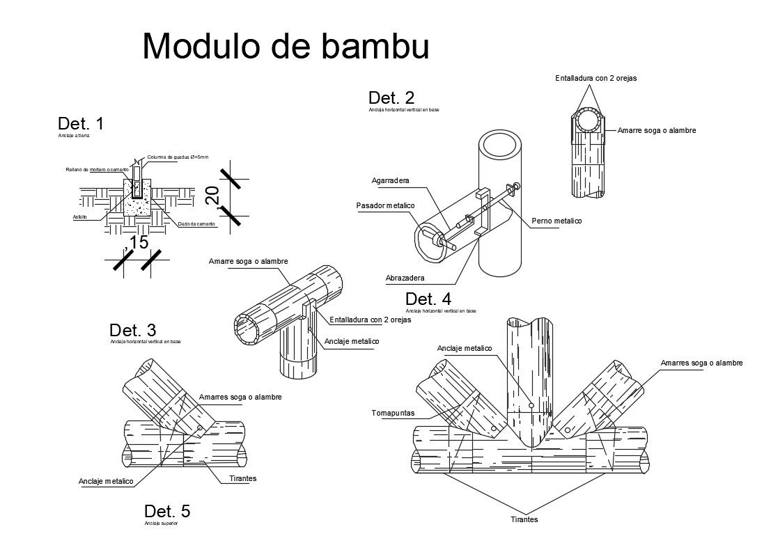 Multiple bamboo modules cad drawing details dwg file