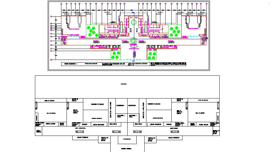 Airport section and distribution plan cad drawing details that includes a detailed view of flooring view, multiple entry doors of different terminal, car parking area, indoor and outdoor garden area, main entry gate of airport with security check, waiting area, seating lounge, boarding gates, ticket counters, shopping areas with shopping branded stores, food stores, cafeteria, toilets for male and female, luggage room, car parking area, main waiting area hall, runway details, airplane view, interior details, furniture details, runways, transportation truck and much more of airport plan details.