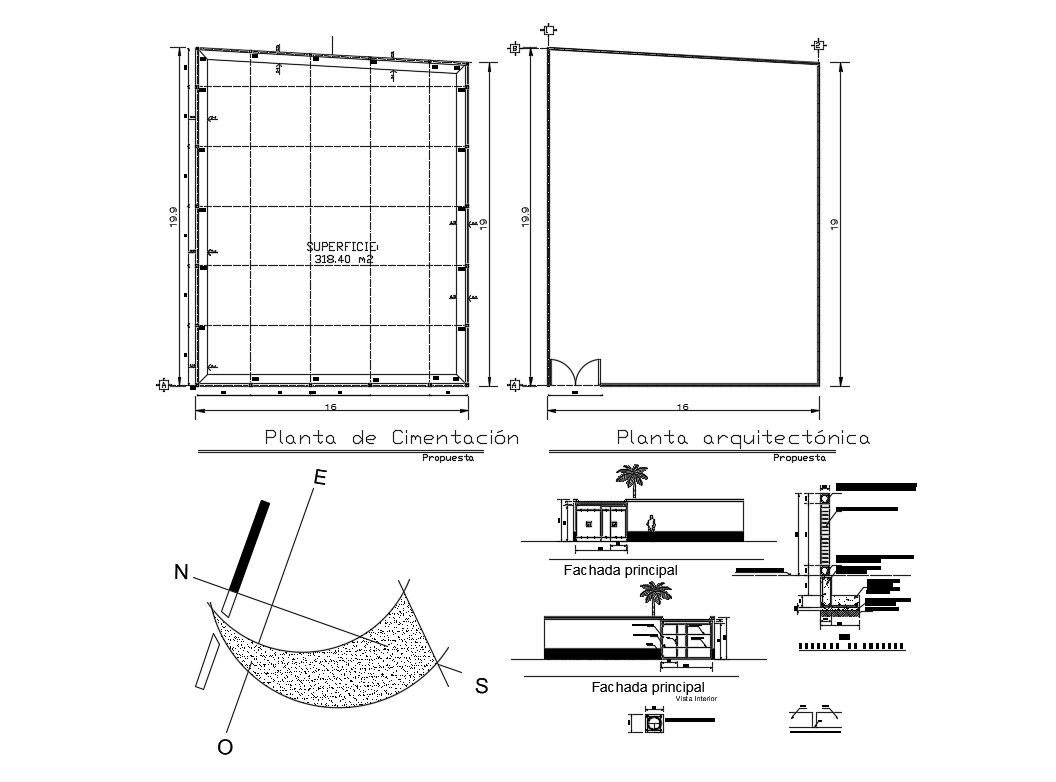 Residential house elevation, section and foundation plan details with column that includes a detailed view of flooring view, doors and windows view, staircase view, balcony view, wall design, dimensions, roof or terrace view, foundation, side typical shoe, typical central shoe, columns, foundations, shoes, cistern tank, walls of concr. arm., beams flat, peralted beams, foundation beams, (cement: sand: crushed stone), typical detail of reinforcement and ended of walls of masonry and much more of house details.