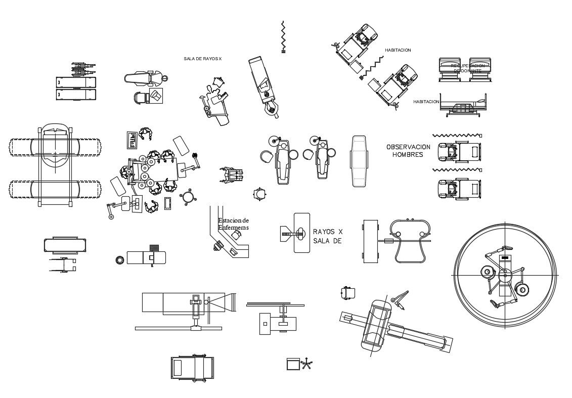 Multiple common medical equipment and furniture blocks cad drawing details dwg file