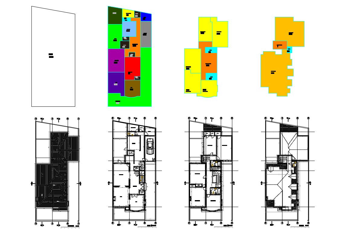 Three level house floor plan layout cad drawing details dwg file