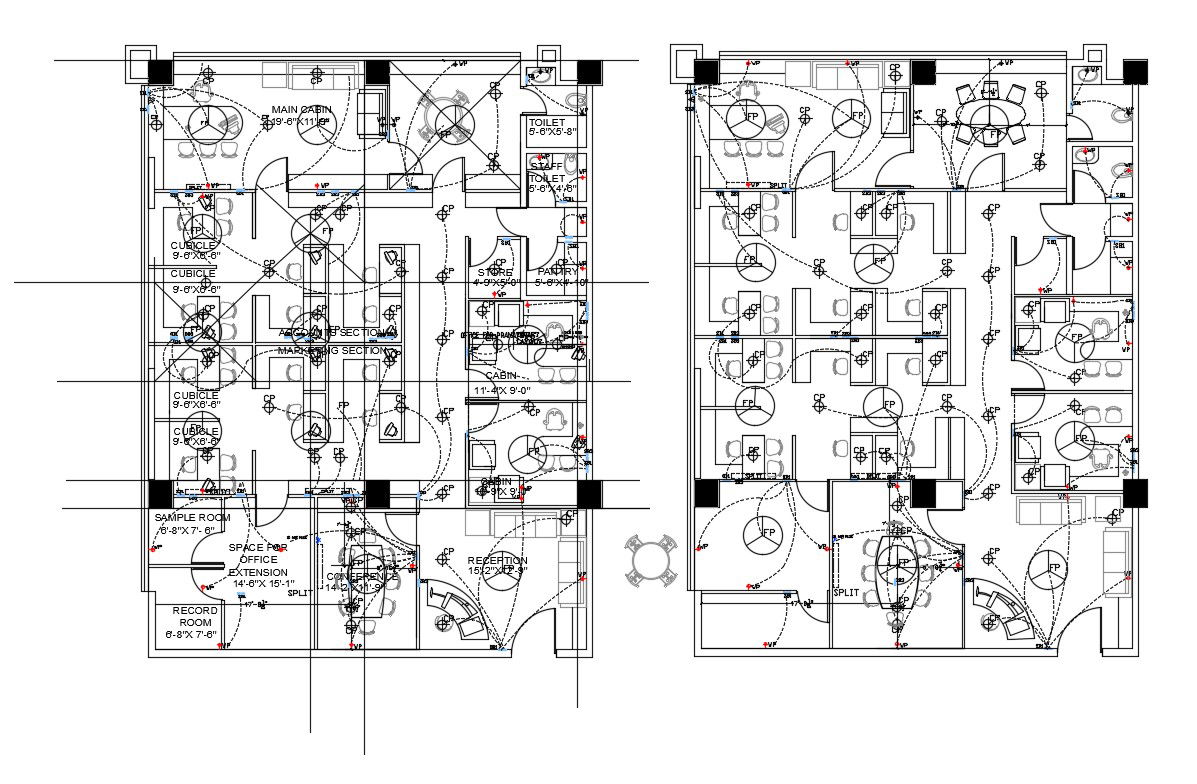Electrical layout plan and furniture layout plan details of office floors dwg file
