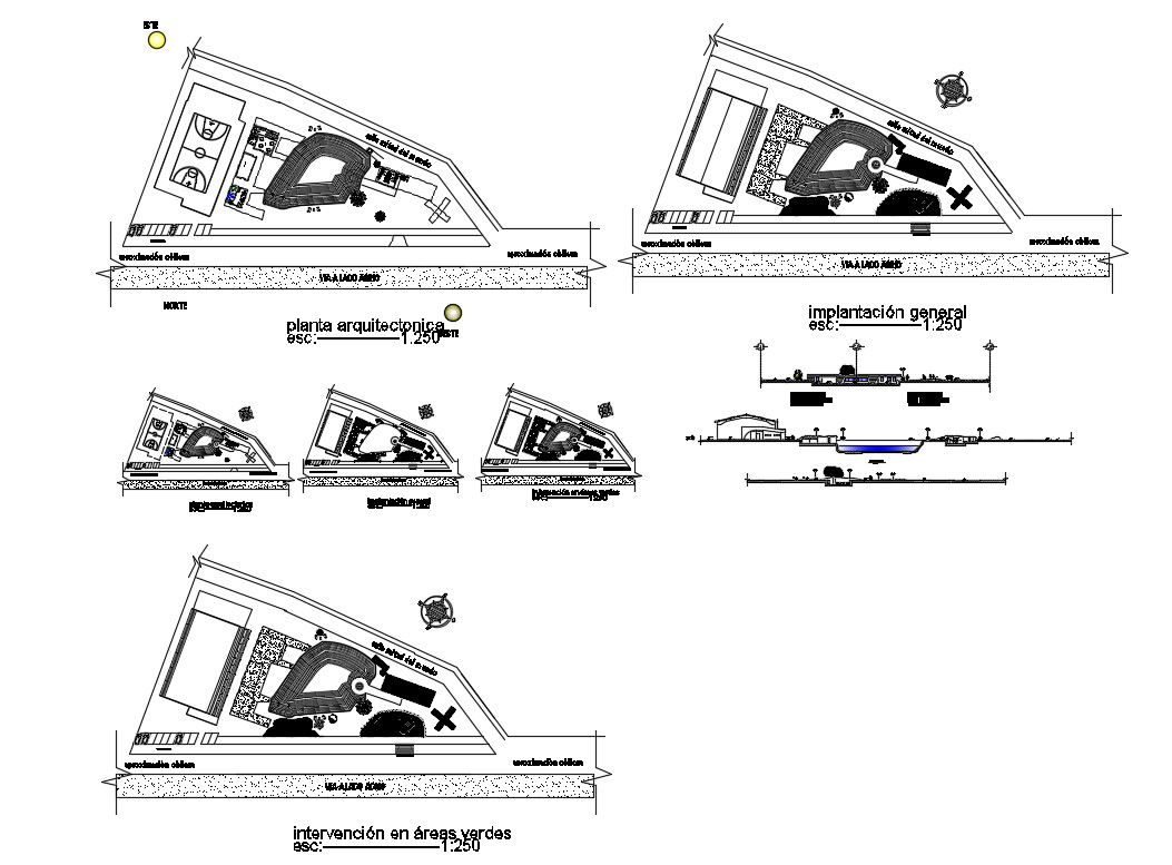 General implication plan, distribution plan and auto-cad details of restaurant dwg file