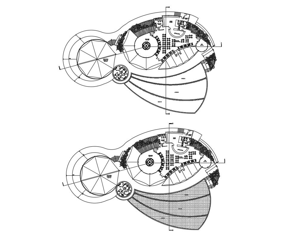 Distribution plan details of canteen of auto-mobile research center dwg file