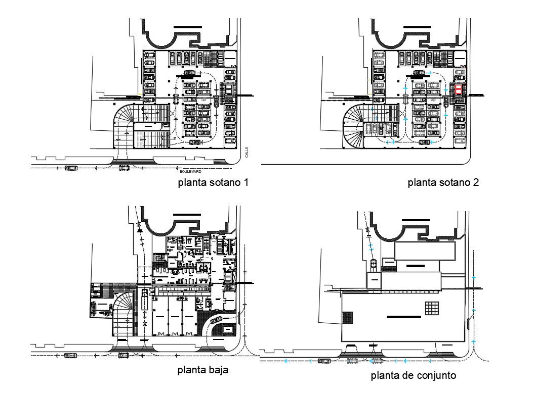 Parking floor, first floor and second floor plan details of maternity hospital dwg file