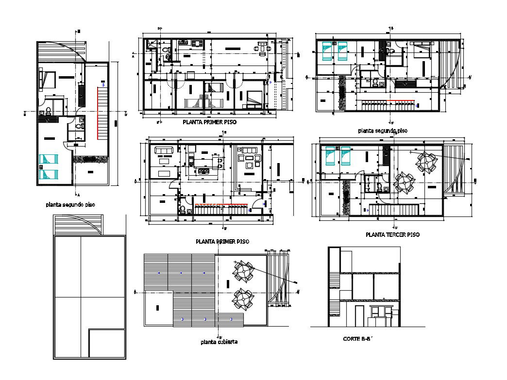 First and second floor plan details of house with cover plan details dwg file