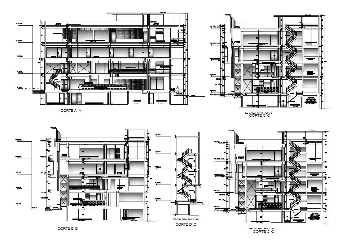 All sided elevation and sectional details of Association of savings and credits san martin building dwg file