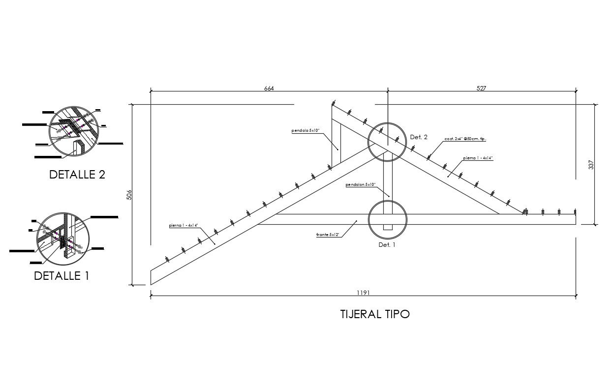 Wooden frame roof constructive structure details dwg file