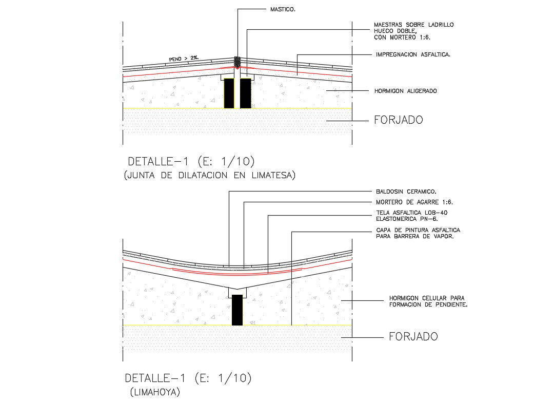 Roof of building constructive structure details that includes a detailed view of previously linked support, multilayer insulation panel, rubber shock absorber element, galvanized profile for anchorage, acoustic sandwich. (see detail), dimensions details, memory of materials, concrete details, cuts and joints details, reinforcement details, water proofing details and much more of roof structure details.