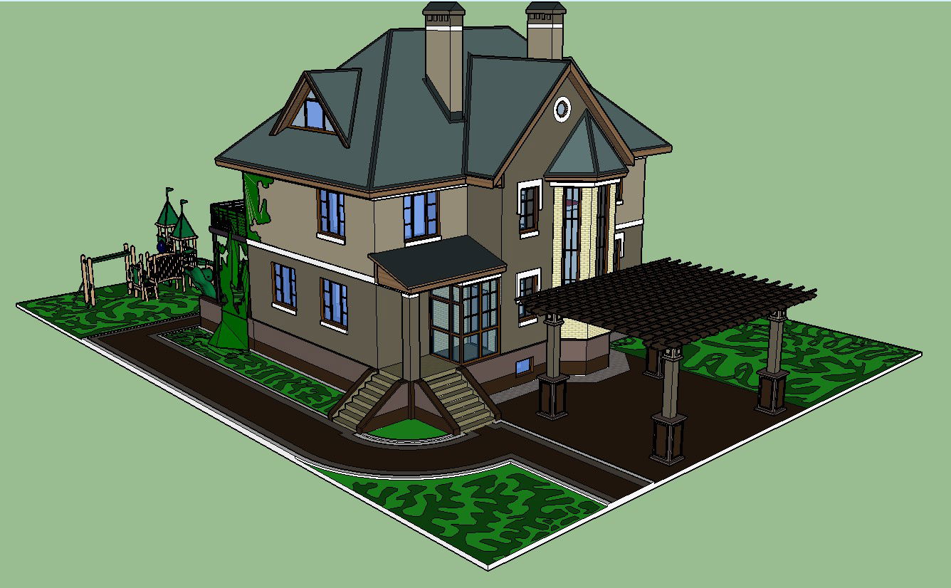 Modern two-story bungalow 3d model cad drawing details skp file