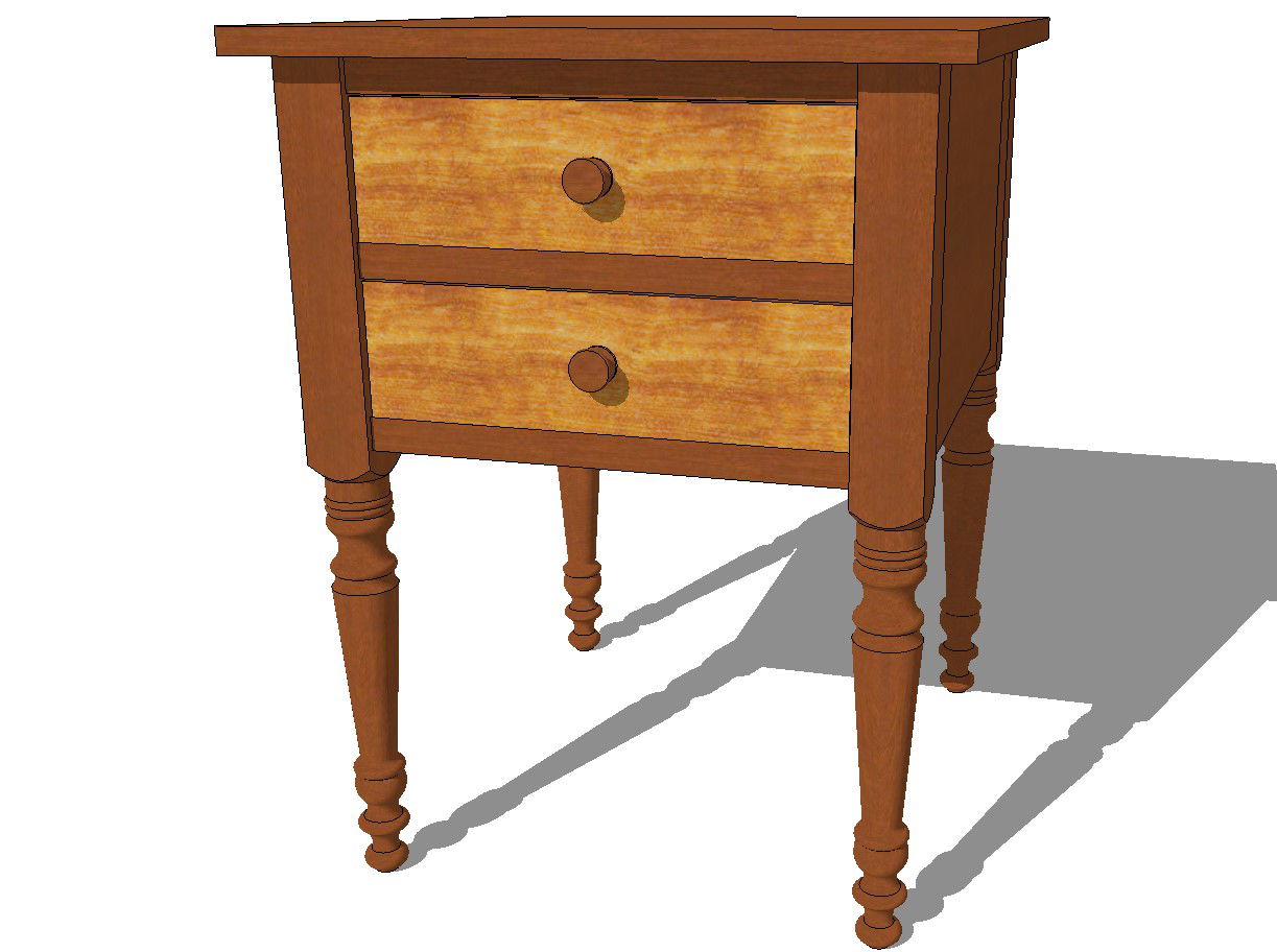 Cherry & Tiger Maple Two Drawer Stand 3d drawing details skp file