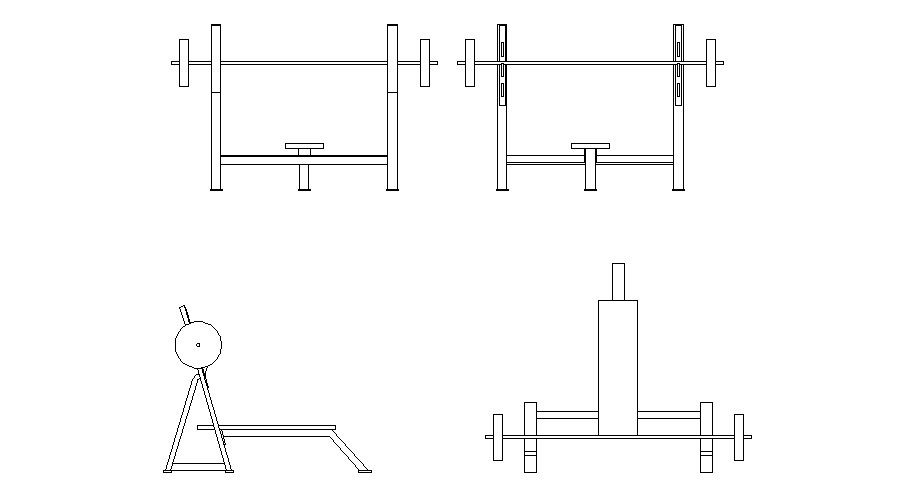 Multiple gym equipment elevation blocks cad drawing details dwg file