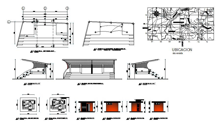 Public hygiene services elevation, section, plan and installation details that includes a detailed view of toilet elevation details, colors details, toilet sectional details, passage, sanitary equipment installation details, doors and ventilation details, plumbing details, interior details, dimensions details, wall section details and much more of sanitary installation details.