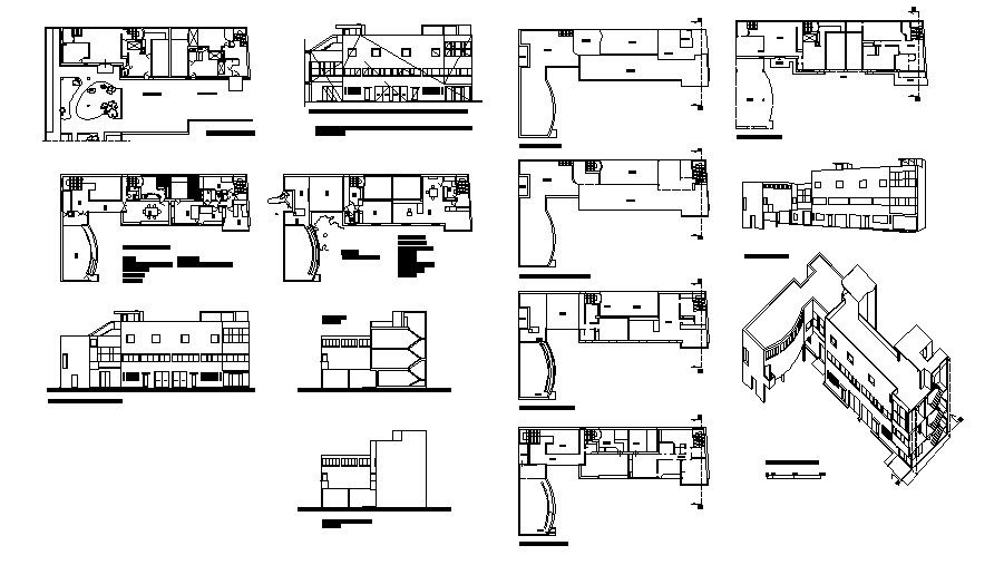 Multi-family housing apartment building detailed architecture project that includes a detailed view of flooring view, doors and windows view, staircase sectional details, balcony view, wall sections and dimensions details with main entry gate, mini garden, car parking view, main entry house door, drawing room, living room, family hall, kitchen, dining area, indoor staircases, laundry area, balcony, bedroom, master bedroom, toilets and bathroom, indoor doors, furniture details and much more of house project.