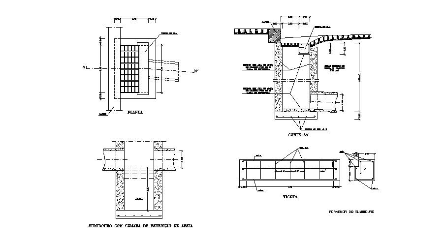 Drainage sewer system section, plan and structure details that includes a detailed view of controller-to-valve details & wiring diagram, pipe and wire trenching, main isolation valve assembly, control valve assembly, air / vacuum relief valve, drain/flush valve, dripper for palms and trees, drip line connection details, pvc to pe drip line take-off, drip irrigation for groundcovers, concrete thrust blocks, dimensions details, material details and much more of drainage details.