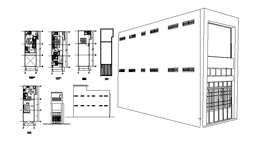 Two-level house isometric elevation and floor plan details that includes a detailed view of flooring view, doors and windows view, staircase sectional details, balcony view, wall sections and dimensions details with main entry gate, mini garden, car parking view, main entry house door, drawing room, living room, family hall, kitchen, dining area, indoor staircases, laundry area, balcony, bedroom, master bedroom, toilets and bathroom, indoor doors, furniture details and much more of house project.