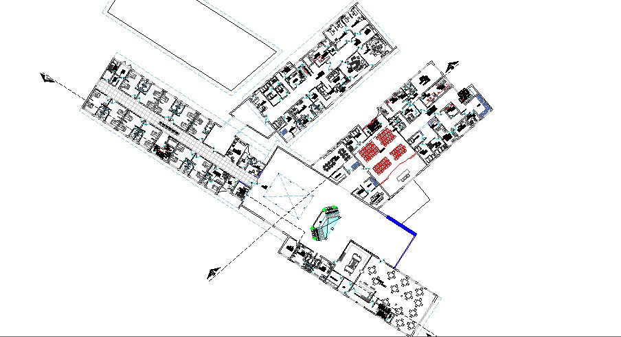 First floor plan details of multi-level hospital building dwg file