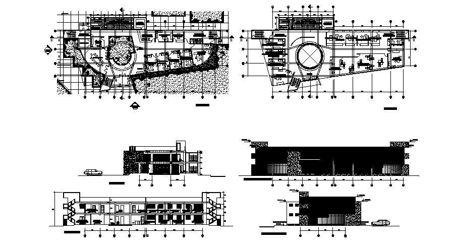 Corporate building elevation, section and floor plan cad drawing details dwg file