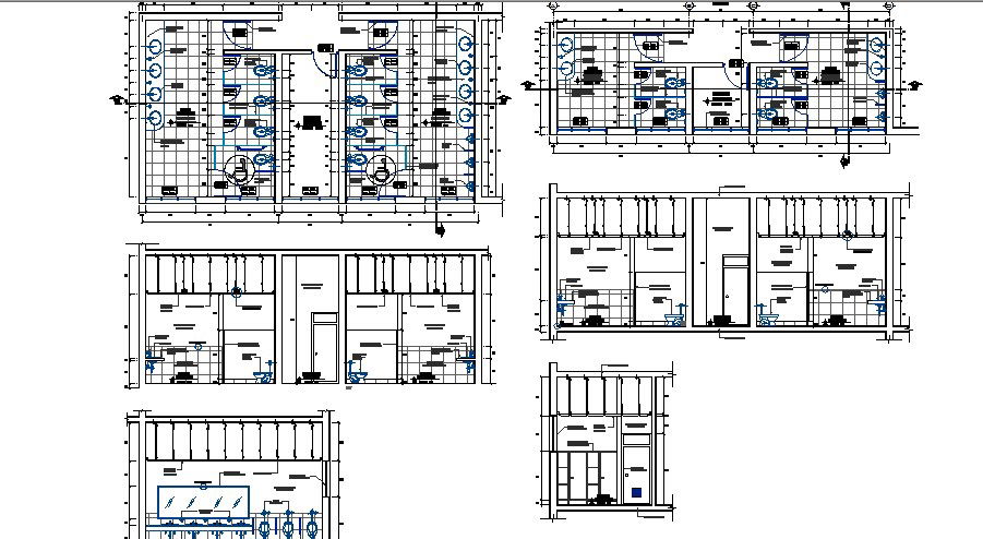 Sanitary services of mall section, plan and installation details that includes a detailed view of toilet plan, floaded elevation of toilet, toilet sections and elevations, doors and ventilations, plumbing details, evc with flush tank, ewc with flush tank, urinals with sensor, wash basin, fd- floor drain, bib cock, health faucet, angle stop cock, piller cock, paper holder, soap dispenser toshi, granite counter, mirror frame, towel rail/ring and much more of sanitary installation details.