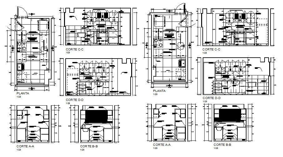 Big kitchen all sided section, plan and auto-cad details dwg file