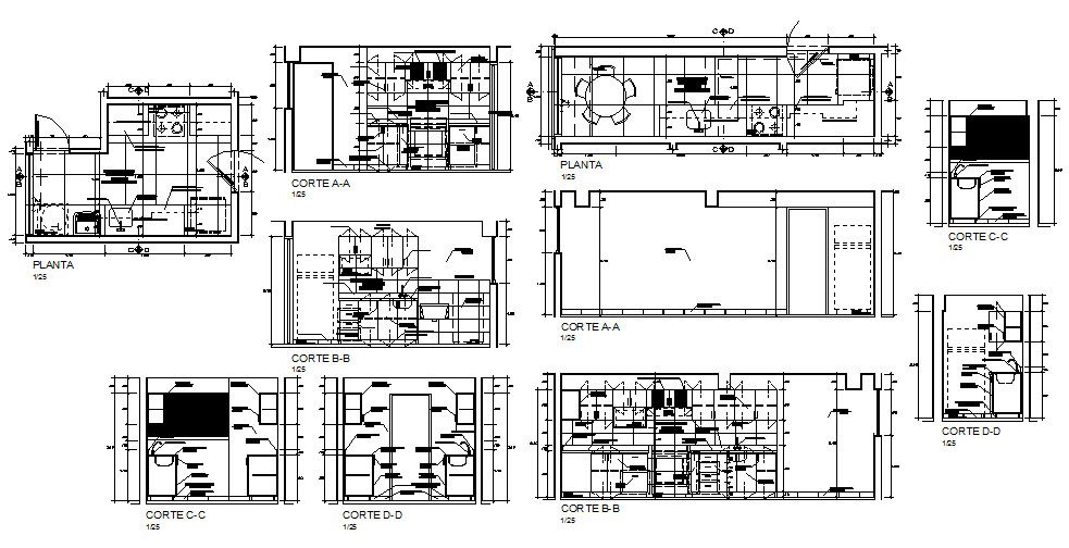 Huge kitchen all sided section and plan cad drawing details dwg file