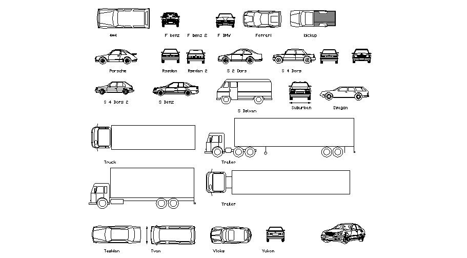 Multiple trucks, cars and vehicle blocks cad drawing details that includes a detailed view of multiple cars, trucks, gyp etc with colors details, size details, type details etc for multi purpose uses for cad projects.