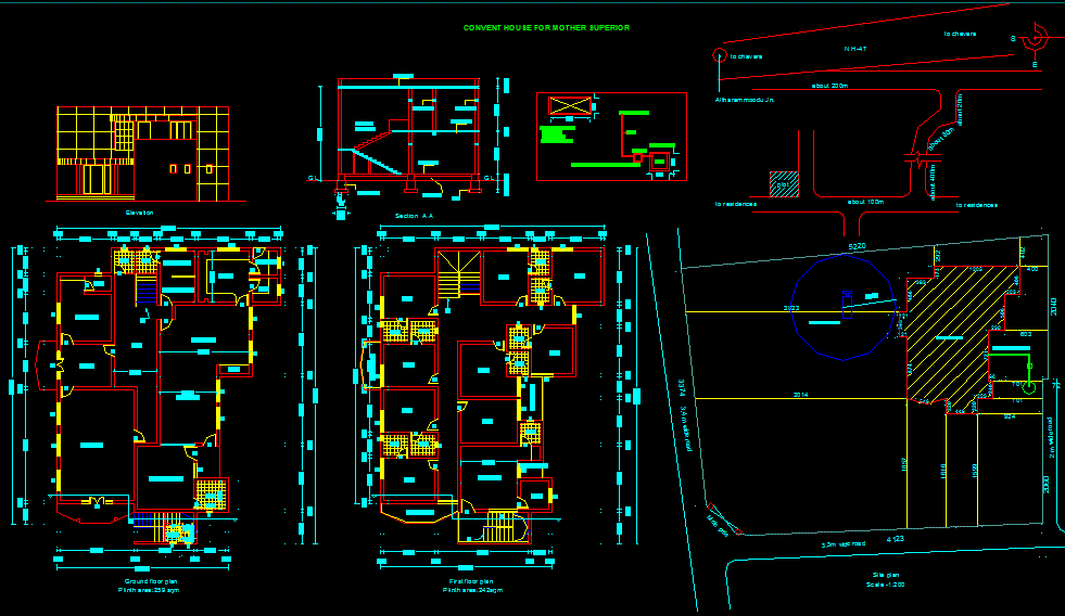 School building DWG CAD design includes ceiling layout, floor plan, and convent house details ideal for architects, designers, and civil engineering projects.