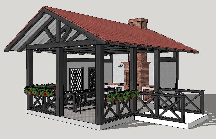 Beautiful wooden shelter 3d model cad drawing details skp file