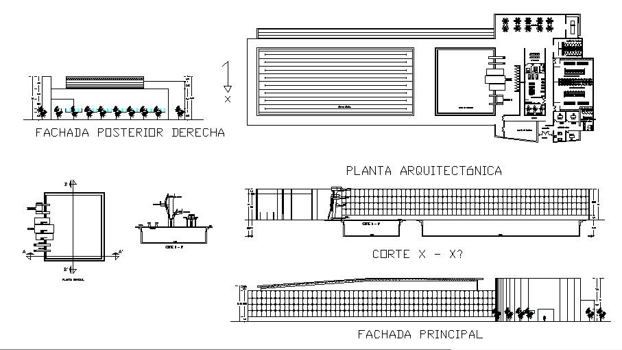 Olympic diving pool and sports center elevation, section and plan details dwg file
