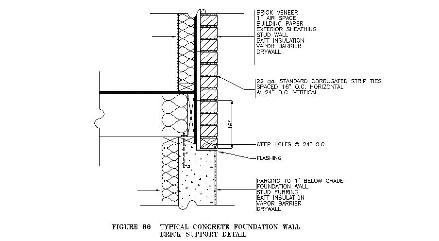 Typical concrete foundation wall brick support construction details that includes a detailed view of layer- wall core polystyrene base material thickness of, layer-3 of wall of "to the base of concrete of thickness, concrete chain, rebar steel rod ", stirrup for chain frame ", Hollow for fastening and assembly. pvc base material, round "so" for post-tensioning, steel plate, see detail pl, reinforcement rod square cms and much more of wall details.