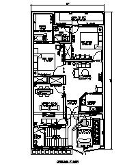 House Layout Plan Ground Floor Size 27'x50' House Plan with Proposed Interior Furniture Placement On demand every size can be designed
