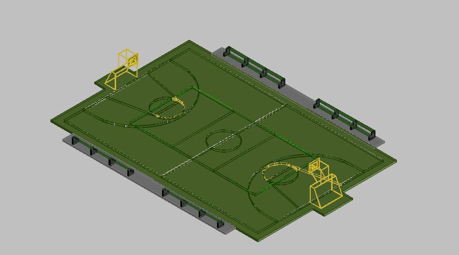 Sports ground 3d model cad drawing details that includes a detailed view of sports ground with line details, measures details, hatching details, colors details, size details, type details etc for multi purpose uses for cad projects.